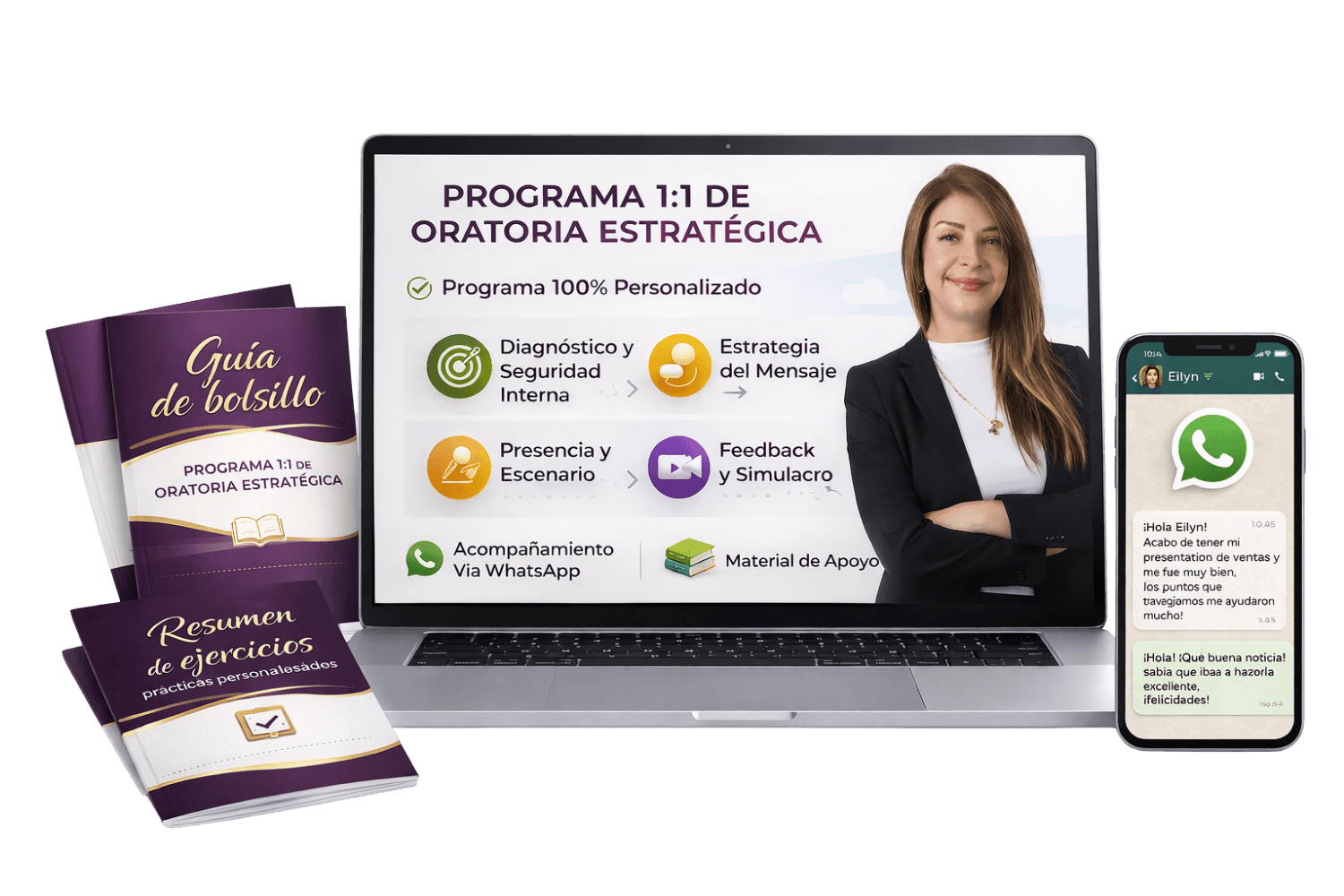 El programa incluye gestión de ansiedad, miedos y creencias limitantes, integrando coaching y técnicas prácticas de oratoria. No forzamos resultados: construimos seguridad de manera progresiva y sostenible.